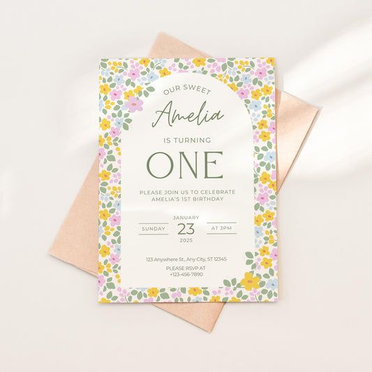 One Silly Goose Birthday Invite Vintage Floral First Birthday 1st Birthday Silly Goose Decor Editable Invitation Nursery Rhyme Birthday