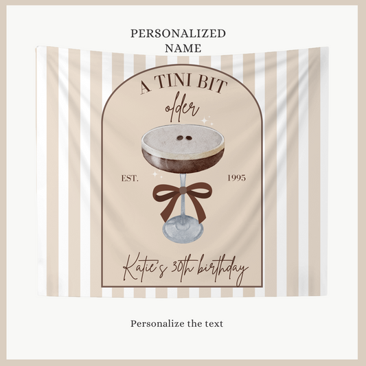 Tini Bit Older Birthday Banner Espresso Martini Party Backdrop Dirty 30 Decorations Dirty Martini Personalized Party Decor Coquette Martini