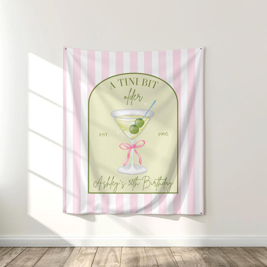 Tini Bit Older Birthday Banner Dirty Martini Party Backdrop Dirty 30 Decorations Dirty Thirty Personalized Party Decor Coquette Martini