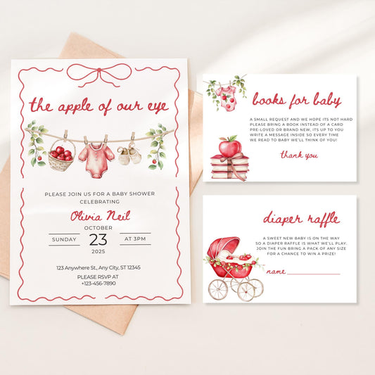 Apple Of Our Eye Baby Shower Invitation Apple Of Our Eye Invite Autumn Fall Apple Baby Shower Fall Harvest Baby Shower Books for Baby