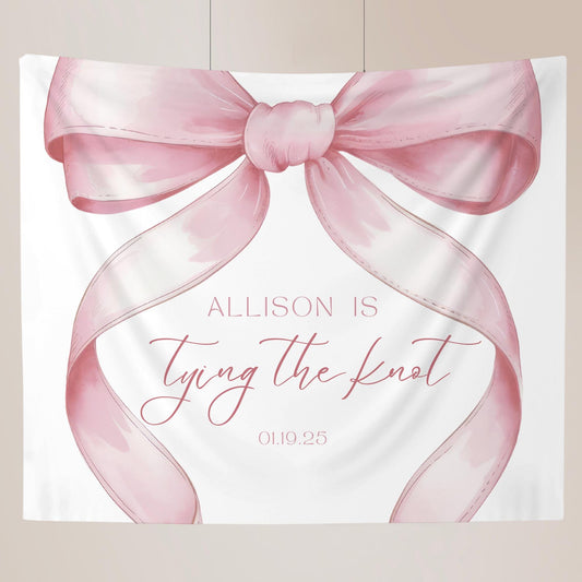 She's Tying the Knot Bridal Shower Personalized Banner Pink Coquette Party Decor Photo Backdrop Ribbon She's Tying the Knot Bachelorette
