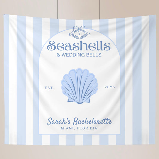 Seashells and Wedding Bells bachelorette Party Banner Beach Bach Decor Last Toast on the coast Hen do Sign bridal shower bach decorations