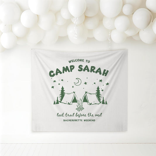 Camp bachelorette Party Banner Last Trail before the Veil Bach Decor Mountain Hen do Sign bridal shower bach decorations