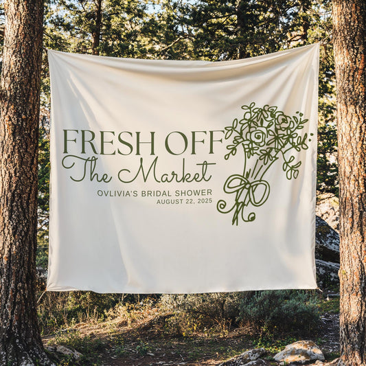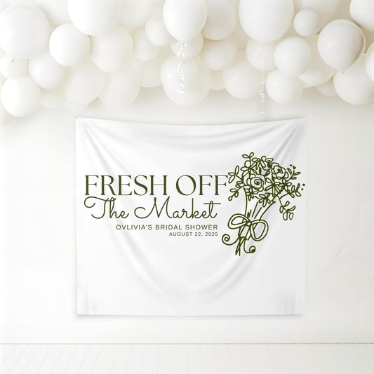 Fresh Off the Market Banner Custom She's Fresh Off The Market Bridal Shower Decor Farmers Market Theme Bachelorette Party Photo Backdrop