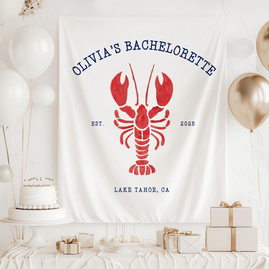 Lobster Theme Bachelorette Banner Custom Coastal Theme Bachelorette Decor East Coast Bridal Shower Photo Backdrop Cape Cod Bachelorette Sign