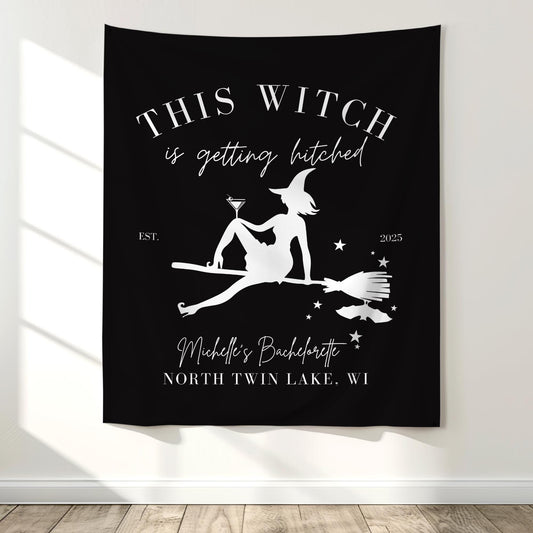 This Witch is Getting Hitched bachelorette Party Witch Bach Decor Halloween Hen do Sign bridal shower bach decorations Fabric Welcome sign