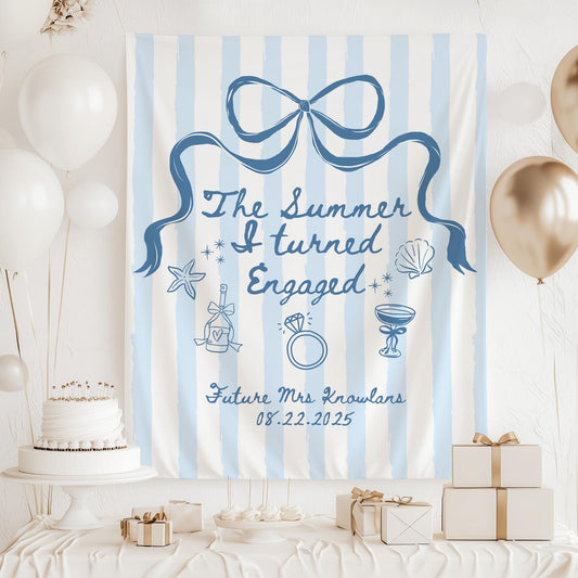 The Summer I Turned Engaged Banner Personalized Coastal Beach Bachelorette Party Decor Engagement Bridal Shower Photo Backdrop