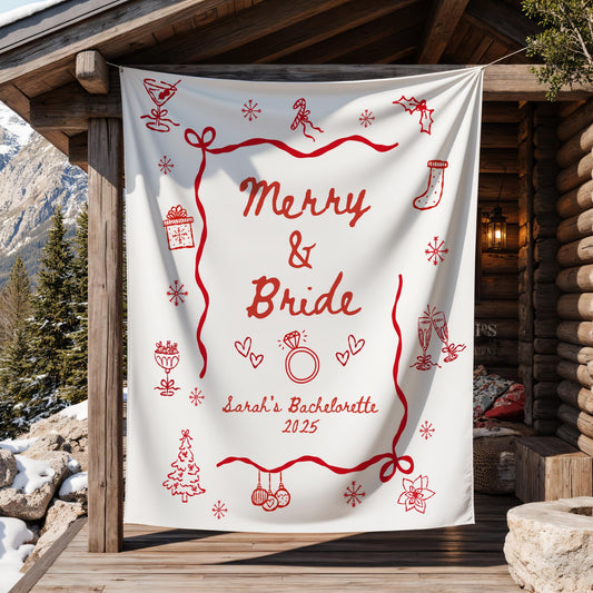Custom Christmas Bachelorette Party Banner Decor Personalized Christmas Bridal Shower Welcome Sign Tapestry Merry And Bride Photo Backdrop