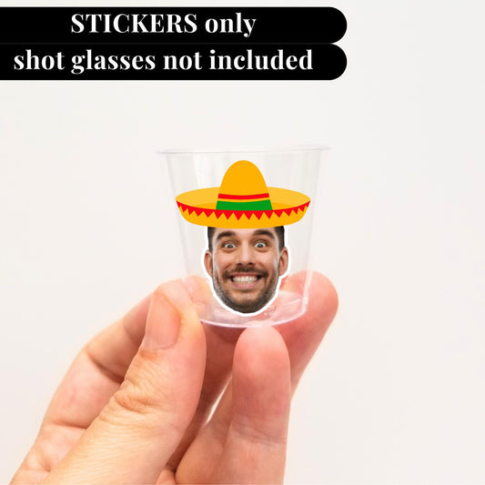Final Fiesta Bachelorette Groom Face Shot Glass stickers Mexican Party Margs and Matrimony Groom Face Party Favors Personalized party decor