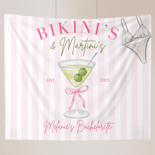 Bikinis and Martinis Bachelorette Custom Banner Martini Bachelorette Party Backdrop Tini's and Weenies Hen Party Decor Beach Bach Party
