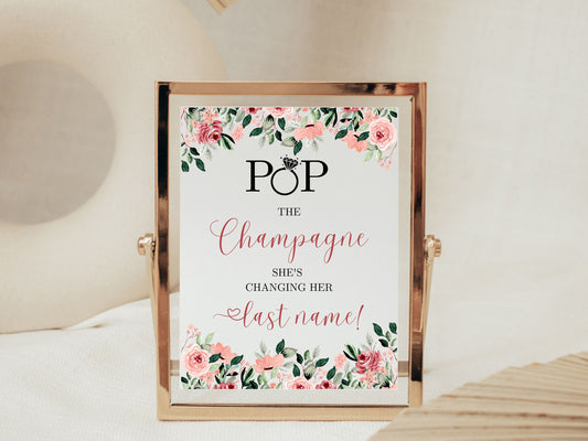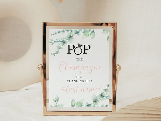 Bridal Shower Sign Pop the Champagne She's Changing her Last Name Table Sign Bachelorette party Decor Pop the Bubbly table sign PRINTABLE