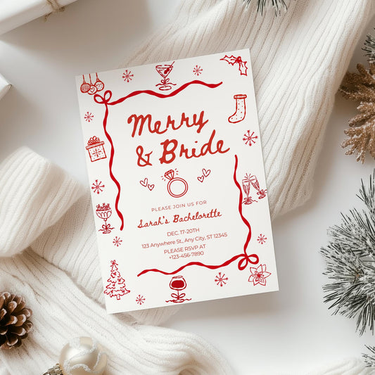 Merry and Bride Bachelorette Invitation Template Editable Christmas Bridal Shower Invite Christmas Party Itinerary Christmas Party Ideas