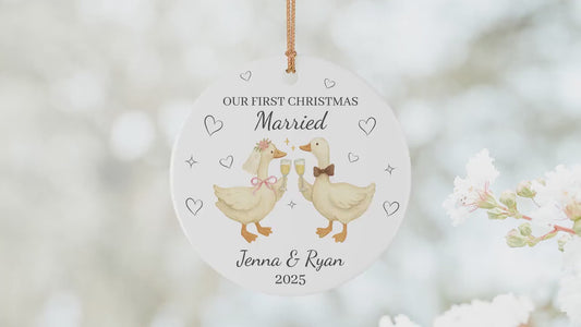 First Christmas Married Ornament 2025 Funny Goose Newlywed Ceramic Ornament Silly Goose Couple Christmas Gift Newlywed Holiday Keepsake