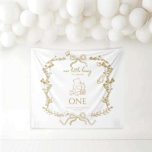 Bee First Birthday Banner Our Little Hunny Floral Bee Sign Honey 1st Bee Day Birthday Welcome Sign Bumblebee First Birthday Tapestry