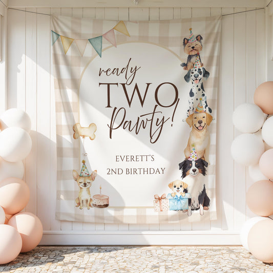Ready TWO Pawty Birthday Backdrop Puppy 2nd Birthday Welcome Sign Gender Neutral Dog Banner Personalized Second Birthday Decoration