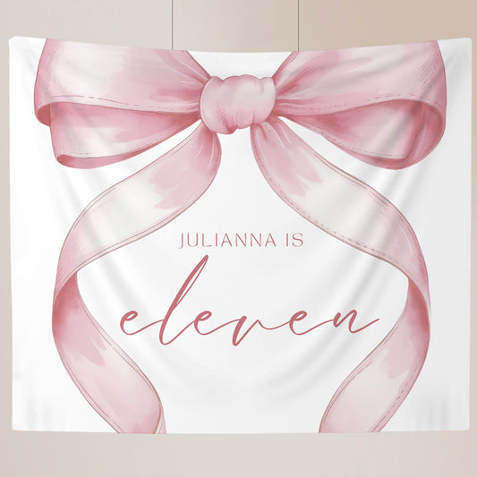 11 Year Old Girl Birthday custom Banner Pink Coquette 11th Birthday Girl eleventh Pink Bow Birthday Tween Birthday Party photo Backdrop