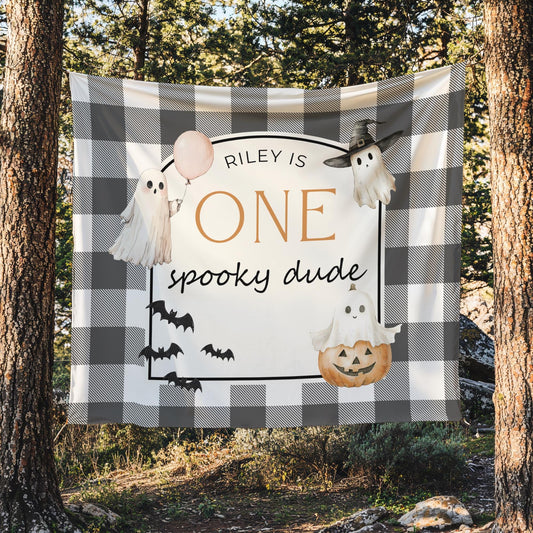 One Spooky Dude Birthday Personalized Banner 1st Birthday First Boo day Party Decor Photo Backdrop Ghost Banner Halloween First Birthday