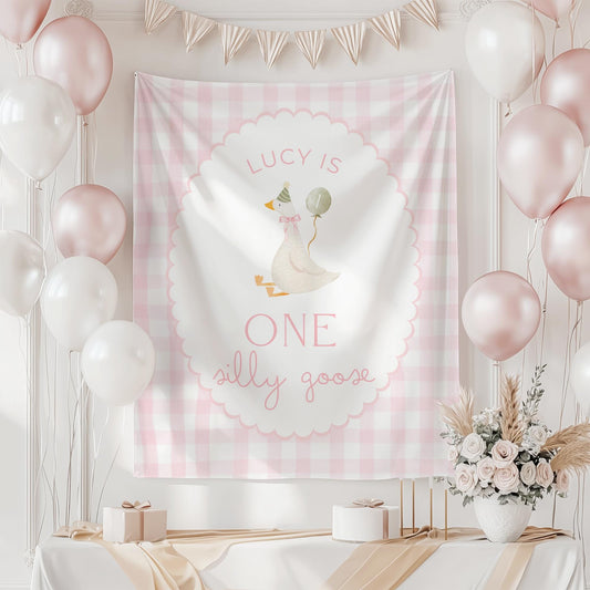 One Silly Goose Birthday Personalized Banner 1st Birthday Silly Goose Party Decor Photo Backdrop Goose Custom Banner First Birthday Ideas