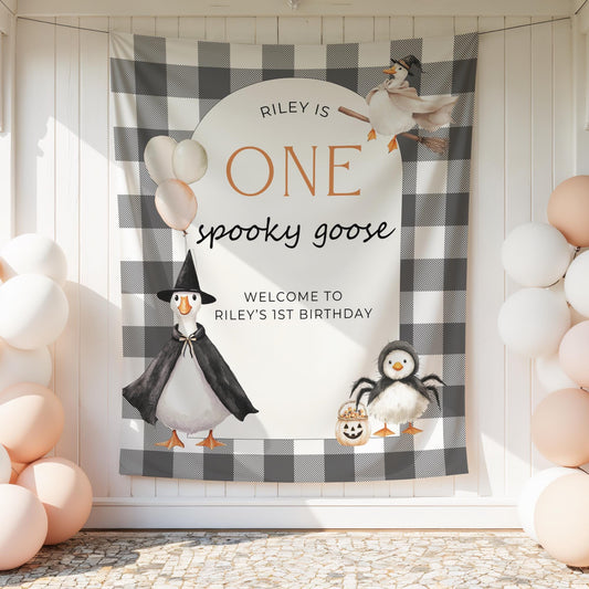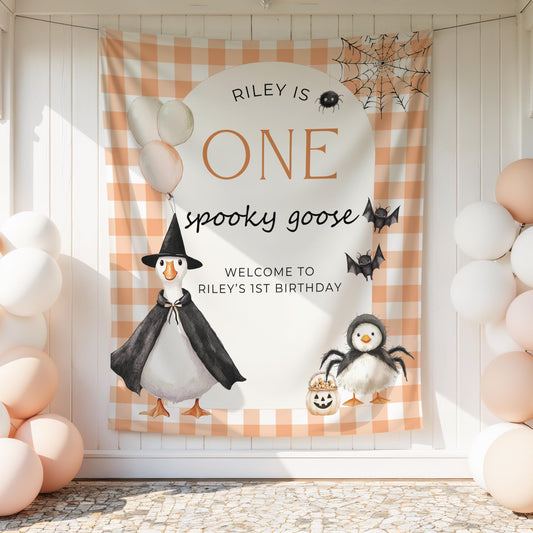 One Spooky Goose Halloween Birthday Banner Custom Halloween Party Sign Silly Goose 1st Birthday Ghost Spooktacular Bday First Boo day
