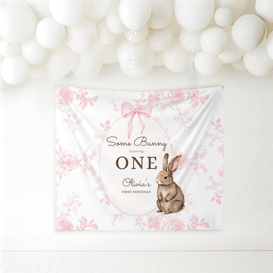 Some Bunny is One Birthday Backdrop Bunny Birthday Welcome Sign Pink Floral Bunny Banner Personalized Easter Birthday Decoration