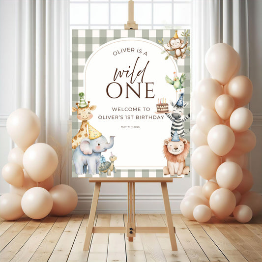 Safari Animal Birthday Welcome Sign Editable Wild One Party Welcome Poster Gender Neutral 1st Birthday Decor Jungle Theme Bday