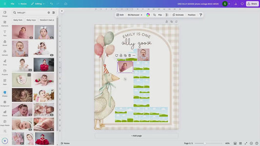 One Silly Goose Birthday Sign Photo Collage Editable Silly Goose Party Monthly Banner 1st Birthday Photo Banner Milestone photo sign