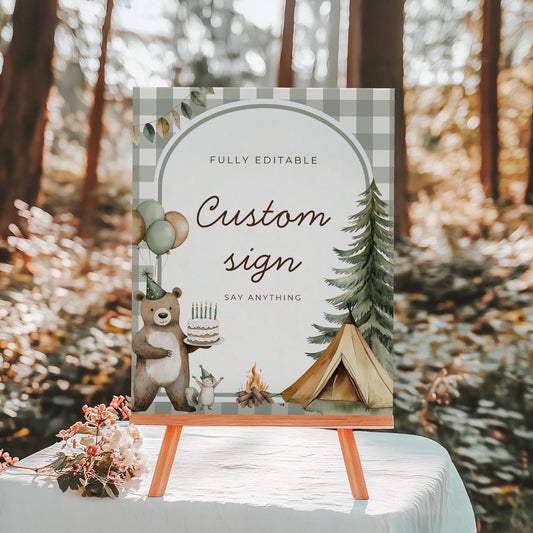 One Happy Camper Birthday Editable Custom Sign Camping Theme 1st Birthday Sign Woodland First Birthday Table Sign Lumberjack party decor