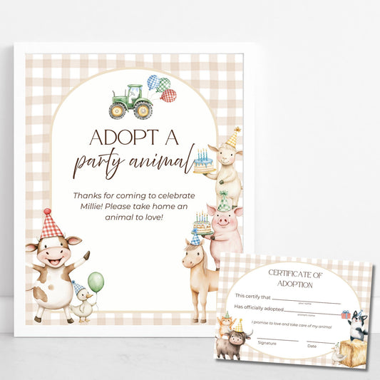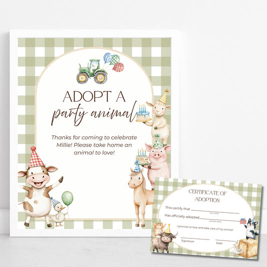 Adopt a Farm Animal Sign Adoption Certificate One Party Animal Party Favor Printable Birthday Decor Download Farm Birthday Decor Barnyard