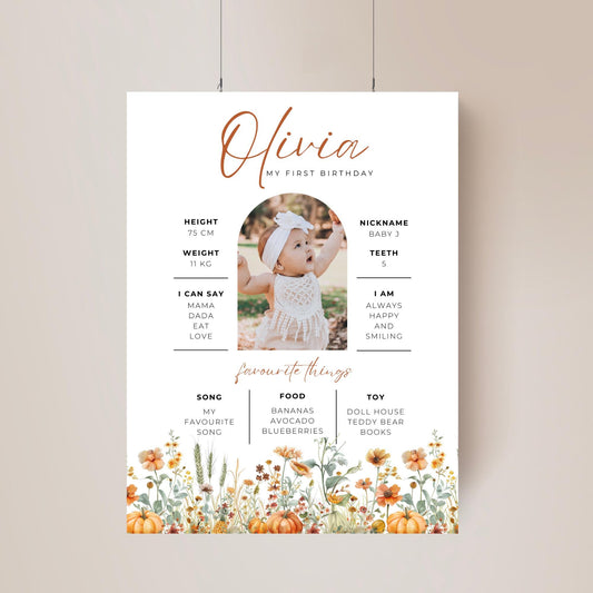 Pumpkin Birthday Photo Milestone Banner Little pumpkin First Party Theme Editable Template Fall Monthly Milestone Photo Collage Decor 1st