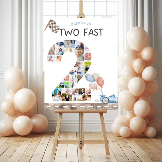 Two Fast Birthday Sign Photo Collage Editable Race Car Party Two Fast Two Curious 2nd Birthday Photo Banner Milestone photo sign