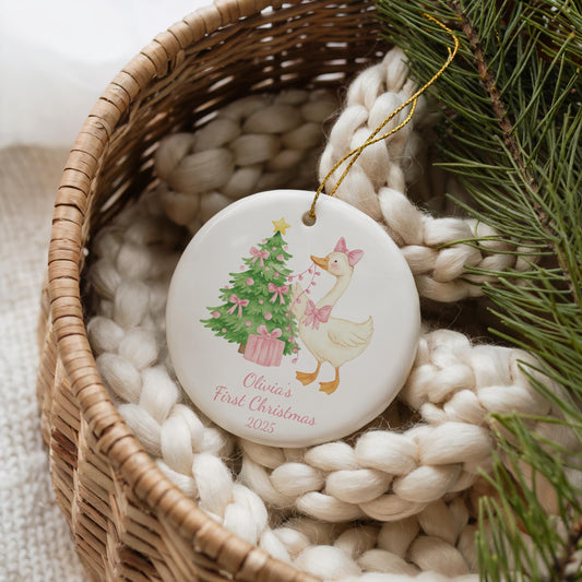 Personalized Baby's First Christmas Ornament 2025 Silly Goose Keepsake Baby Girl Ornament Silly Goose Gift for New Baby Girl Pink Bow Bauble
