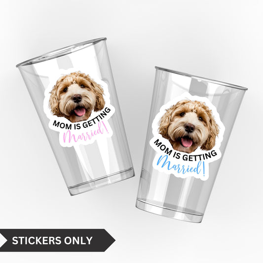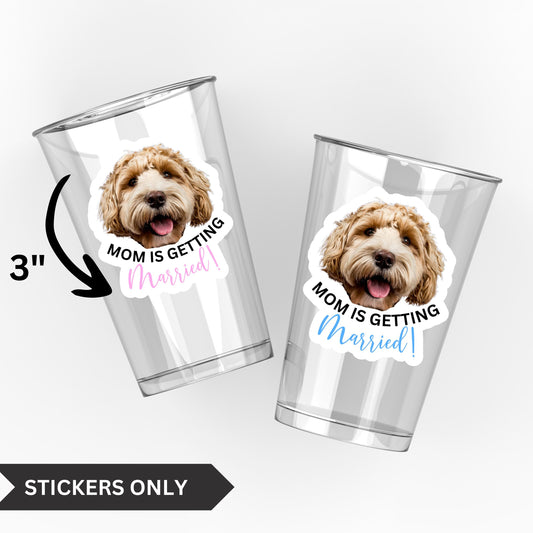 Personalized Dog Face Mom is Getting Married Stickers for cups Bachelorette Party Favors with Dog Bride Decor Custom Face stickers for Hen