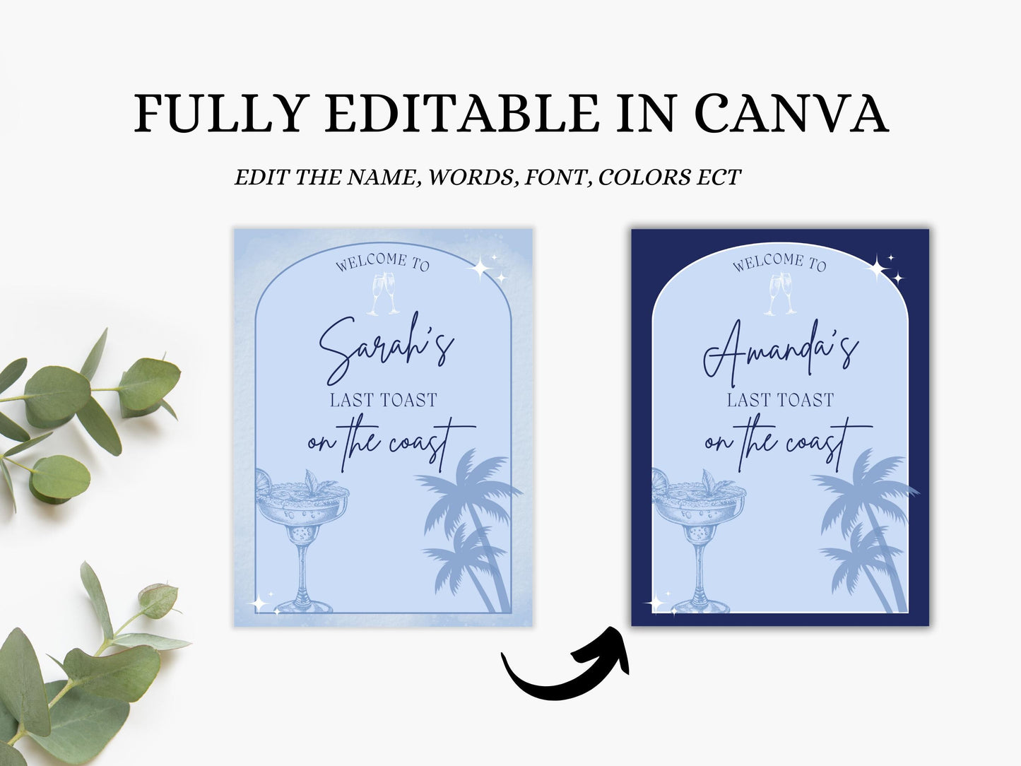 Coastal Bachelorette Welcome Sign Template Last Toast on the coast personalized decor sign Beach Bach Charleston bach Nautical Hens Party